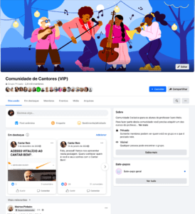 Comunidade para alunos VIP onde você pode conhecer outros alunos do curso e postar os seus vídeos cantando e mostrar a sua musicalidade em um ambiente fechado e reservado.