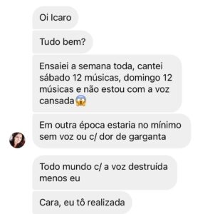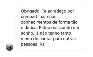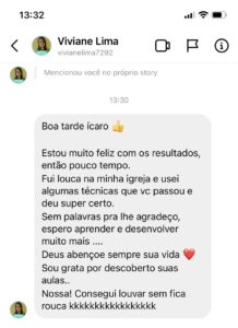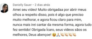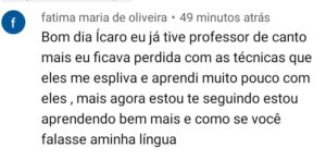 “O professor Ícaro e o curso Cantar Bem transformaram a minha voz e a minha forma de cantar”