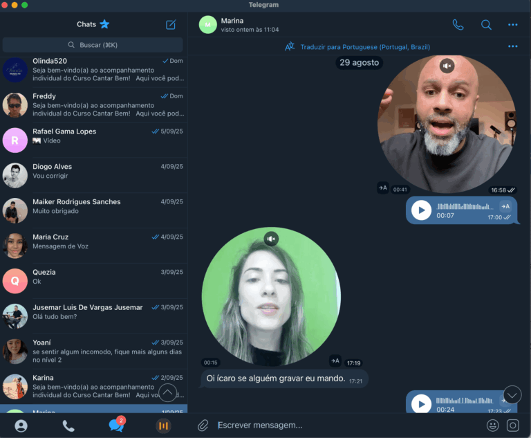 O Cantar Bem é o único curso que oferece Mentoria Individual com o professor e sua equipe de mentores através de mensagens de vídeo e áudio.